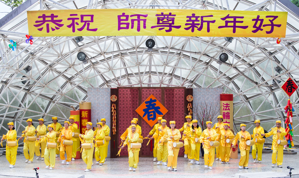 法轮功学员表演才艺,恭祝师尊新年好