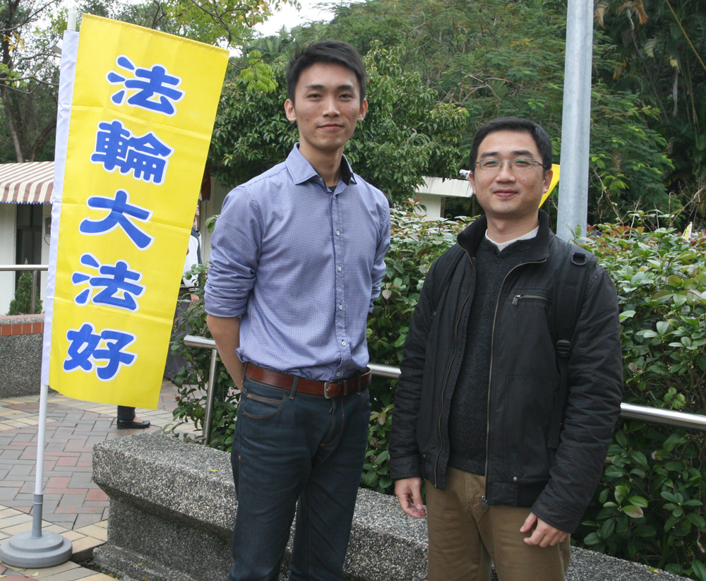 三重法轮功学员郑清华以前因为搬重物,不慎摔下楼梯导致腰椎间盘破裂,西医外科手术拿掉碎块后,留下麻烦的后遗症,长期看中医也罔效。一九九七年四月,他偶然在报纸上看到法轮功讯息,寻找到九天学习班及炼功点,从此坚修至今,腰椎间盘的毛病在修炼后不知不觉不药而愈。今天,他一早就来到“士林官邸”,郑清华表示是专程来给师尊拜年,并且抓紧时间向可贵的中国人讲真相,希望能有更多的人了解法轮大法的美好,以及发生在中国大陆的迫害真相,不被中共谎言所愚弄欺骗。