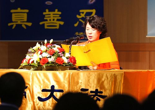 当天的十二位发言者全部是韩国法轮功学员,他们中有博士后等高级知识分子,也有各领域的公务员,他们除了交流如何按真、善、忍严格要求自身修炼以外,主要讲了在各个地区讲真相的体会。有不少长年讲真相的韩国学员为了给大量来韩的中国游客讲真相,当天没有来得及参加这次法会交流。