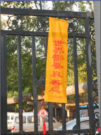 黑龙江鸡西大法弟子挂横幅欢庆“师尊生日暨513法轮大法日”