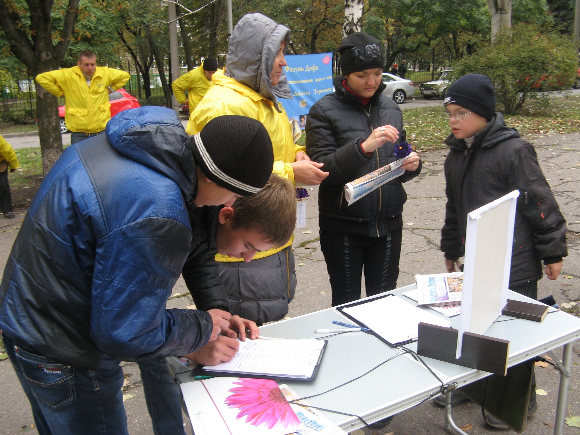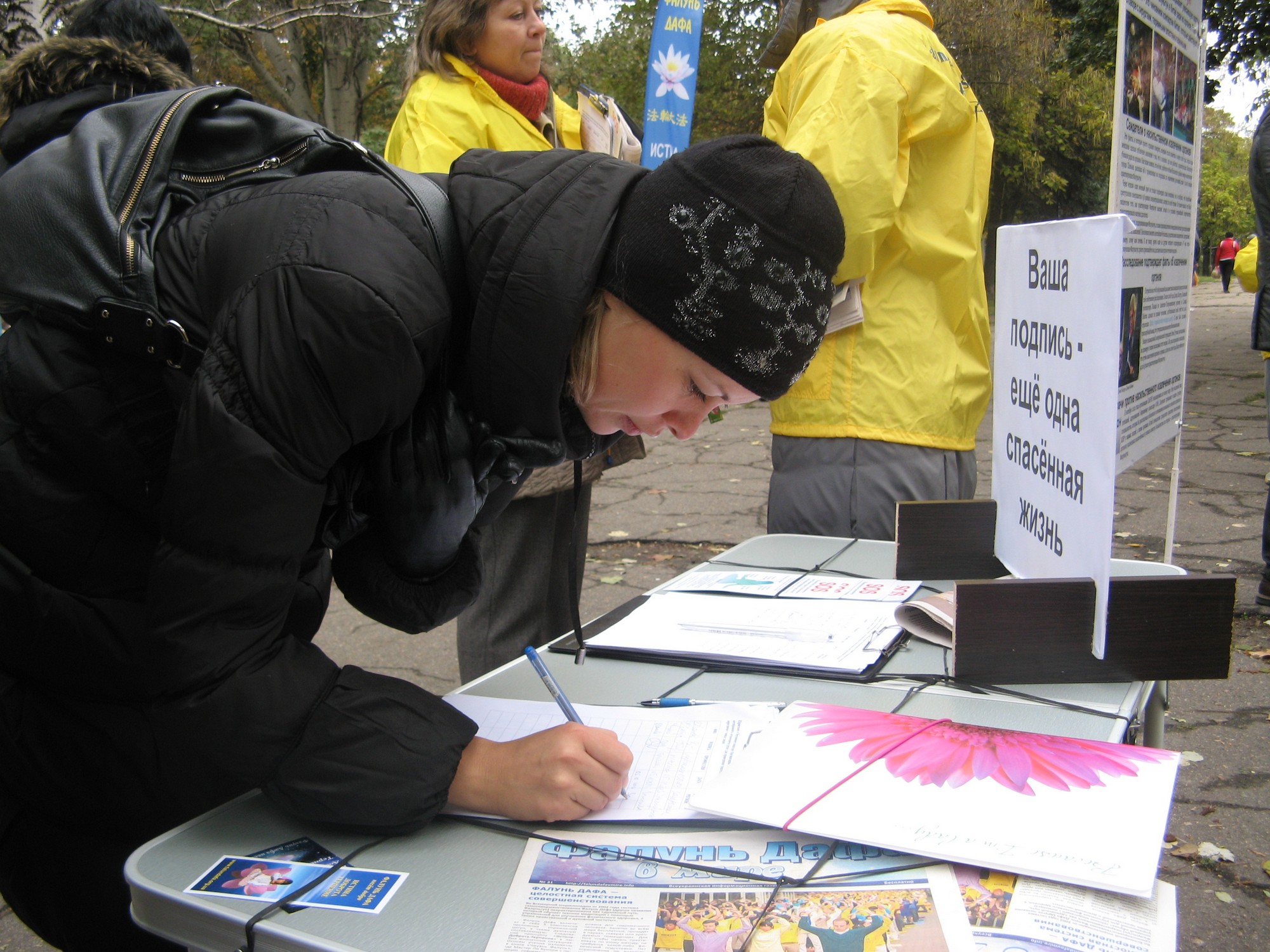 在征签过程中,有个年轻的小伙子听到法轮功学员讲述的发生在中国的迫害后,签下了名字,并对法轮功学员说:“需要立刻停止这一(活摘器官的)罪恶。”
