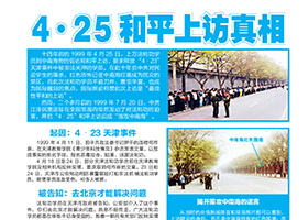 十四年前的1999年4月25日,上万法轮功学员到中南海旁的信访局和平上访,要求释放“4.23”天津事件中被非法关押的学员。
