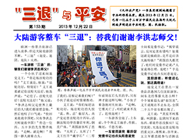 最近两年又开始送真相对联。对我们讲真相又增加了一个救人的力度,因为过年家家户户都要买对联。我们抱着真相对联也是挨家挨户的送,见谁家开门就進去,每次都是开心的進去,高兴的出来,三退的人数渐渐的增多。
