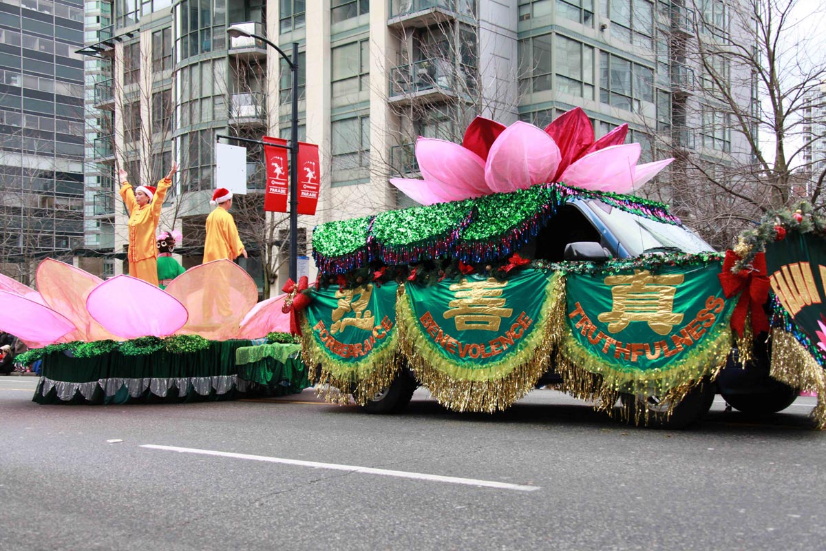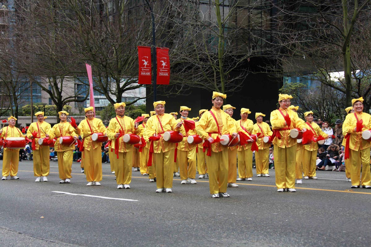 温哥华法轮功学员的游行队伍包括天国乐团、炼功方阵、仙女队、花车和腰鼓队,是游行队伍中最大的队伍之一。法轮功学员的游行队伍受到观众的欢迎和媒体的关注,所到之处很多观众都鼓掌欢呼,并纷纷拍照留念,不时可以听到华人观众感叹“法轮大法来了!”