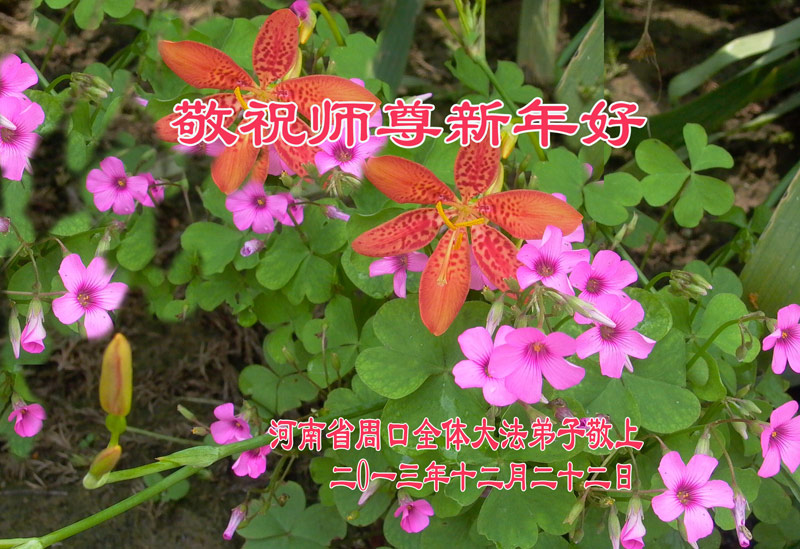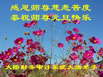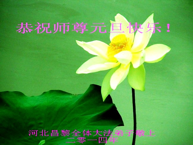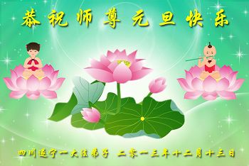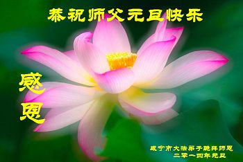 我是焦作地区大法弟子,代表焦作地区的大法弟子们和觉醒世人借此元旦佳节之际,祝贺我们慈悲伟大的师父元旦佳节快乐!