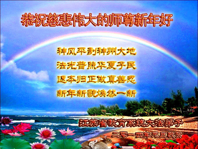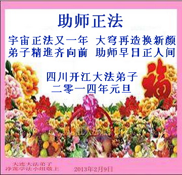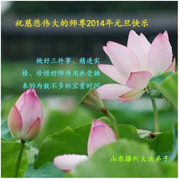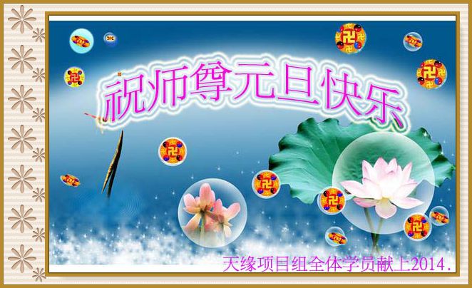 2014年新年到了,在师父的慈悲救度下,人类又走过了一年,邪恶在恐惧中惶惶度日,弟子们一定抓紧时间做好三件事,完成誓约,请师父放心。
