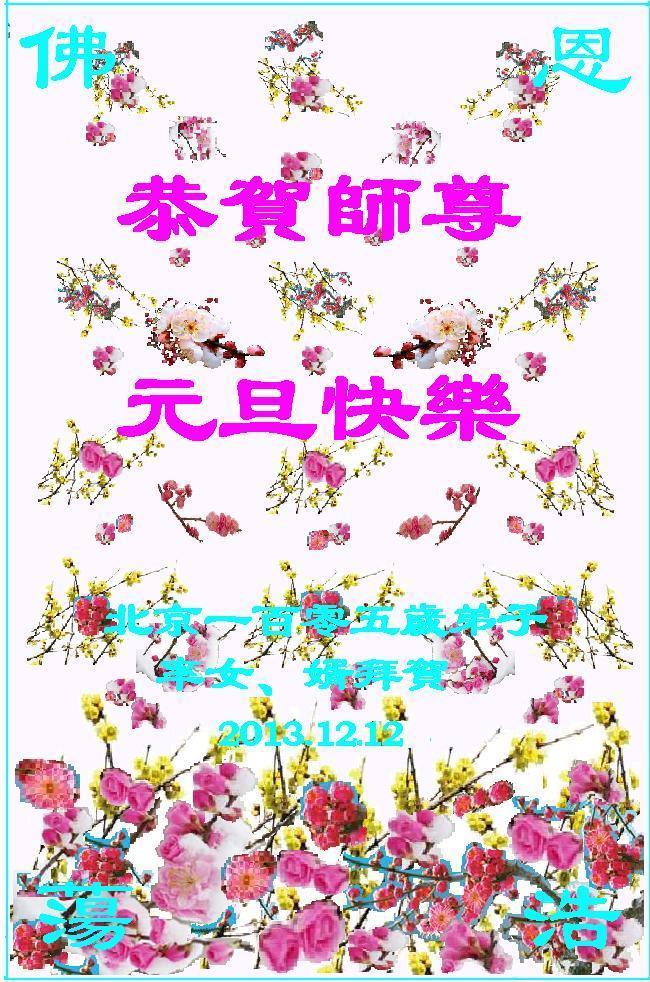 我们感谢法轮功李老师的保佑!衷心祝愿李老师元旦快乐!