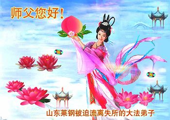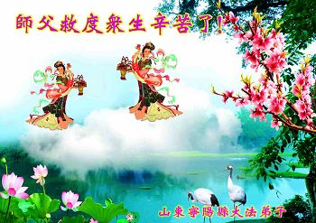 李大师您好!我们代表所有的亲朋好友向您问好!我们衷心感谢您的救度洪恩!大陆现在是人人自危,人们都生活在极度的恐怖之中,一不小心就会丢掉小命!这都是中共的无神论带来的,人们不相信有神灵,不相信善恶有报,昧着良心挣钱。唯有您的法轮功弟子才是真正的好人,放在哪里都让人放心。可是邪恶的中共却对这样一批好人進行残酷的迫害!中共的暴行怎能不让所有善良的人们寒心!邪党不亡,中国是永远没有希望的!我们希望早一点结束这暴行,回归天理良知,给所有善良的人们一个交代,我们相信那一天不远了!因为自古以来邪不胜正,所有行恶的都没有好下场。再一次跪谢慈悲伟大的李大师给了我们得救的机会!