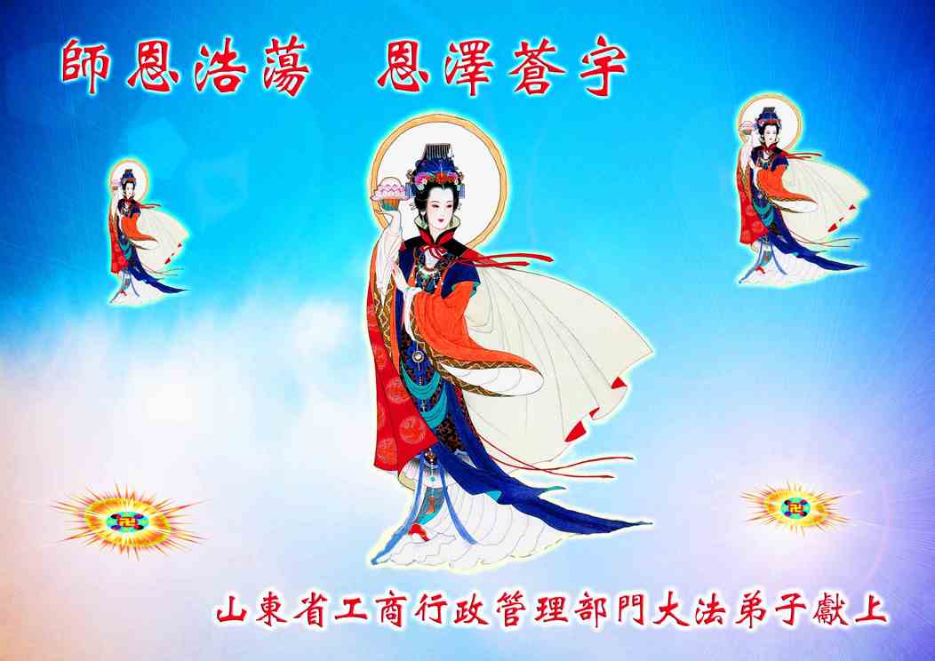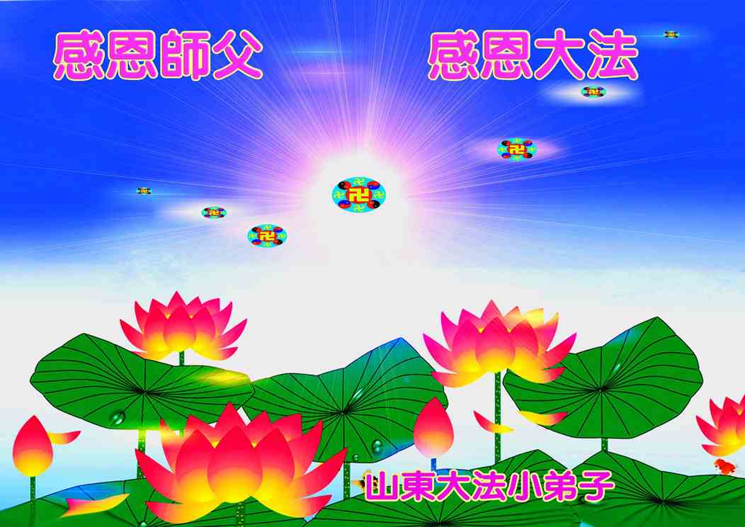 我们代表所有的亲朋好友以及明白大法真相的世人感谢李大师慈悲救度!我们无限的感恩李大师,感恩真善忍宇宙大法!是您无量慈悲让法轮功弟子把我们从噩梦中唤醒。我们在中共邪党的欺骗下,浑浑噩噩的生活了大半生,被邪党洗了脑,没有了正常人的思维,满脑袋的党文化、斗争哲学,是伟大的李大师给了我们重生的希望,让我们有了正统的思想,我们从心里感谢李大师的再造之恩!