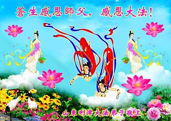 新年伊始,首先叩谢李大师慈悲救度洪恩!我们庆幸自己还能够有如此殊荣向慈悲伟大的李大师献上最诚挚的感恩,曾几何时,由于自己一时糊涂听信了中共邪党的谎言,一度的仇恨着坚持正信的法轮功修炼者,可是事实是不可抗拒的,我们看到身边的每一位法轮功修炼者原来并不象中共邪党宣传的那样,我们亲眼目睹了他们的处事原则,遇事首先为别人着想,兢兢业业的工作,不争不斗的高贵品格,总是把微笑无私的带给对方,在邪党无理迫害下那种大义凛然的壮举令世人敬佩,这哪象中共邪党宣传的那样?这样的好人太难找了!在此奉劝那些与中共邪党还没有划清界限的世人,擦亮自己的眼睛用清醒的头脑来了解法轮功,如此高德大法,如此善良的民众才是人类的希望。