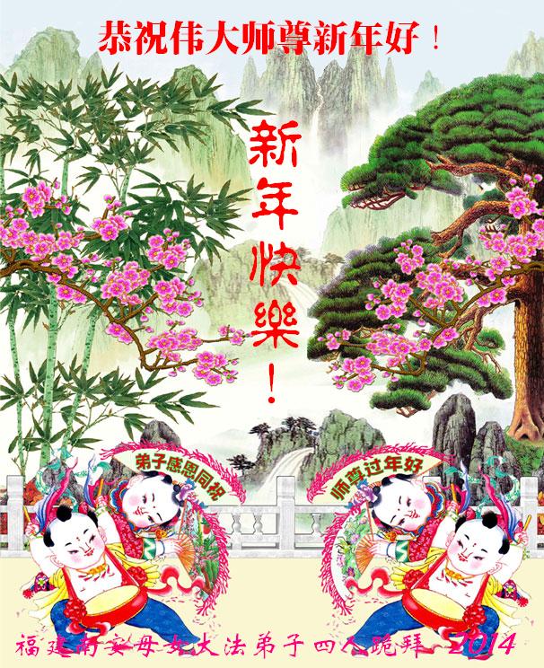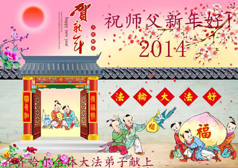 大庆东风新村一区、八区、第八采油厂全体大法弟子向伟大的师尊拜年,祝师父2014年元旦快乐!
