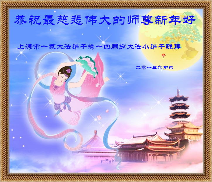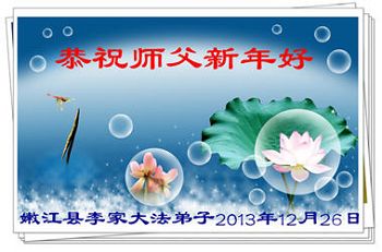 我们家族祖孙四代三十余口一直相信法轮大法,敬重李洪志大师。因为我们的亲戚中有数名大法弟子,从他(她)们身上让我们看到了法轮大法的美好、纯正与神奇,我们家族也跟着受益多多,每个家庭都平安幸福,吉祥如意,喜事接连不断,这是我们相信大法、敬重李大师得到的福报。因此,特借二零一四年元旦来临之际,我们全家向李大师表示最诚挚的感谢!恭祝李大师元旦快乐!