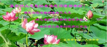 尊敬的李大师您好!我们衷心感谢您的救度大恩!自从我们看了《九评共产党》之后,我们彻底看清了中共是一个真正的邪教,是一个杀人不眨眼的恶魔,它残害死了八千万中国同胞,这样的血债它永远也偿还不完!我们在此真心奉劝那些还没有“三退”的同胞们赶快清醒过来,让我们共同解体这个人间的恶魔吧!因为慈悲的李大师还在等着我们!跪谢慈悲伟大的李大师!