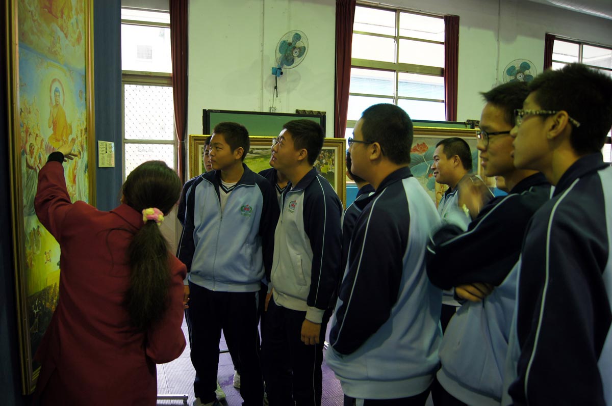 ![]() 导览人员向参观学生解说画作内涵 |