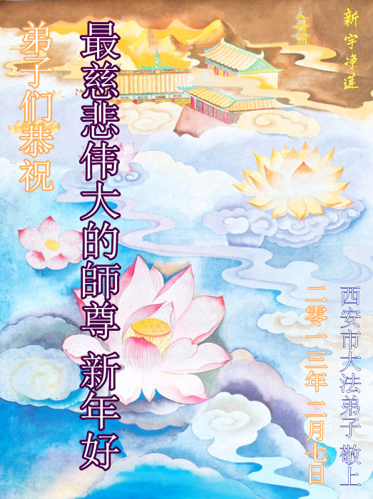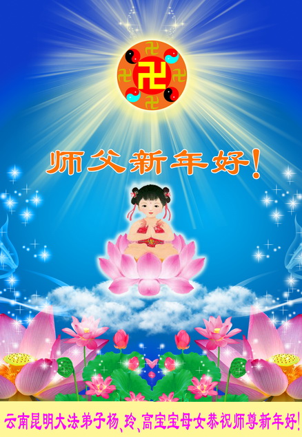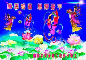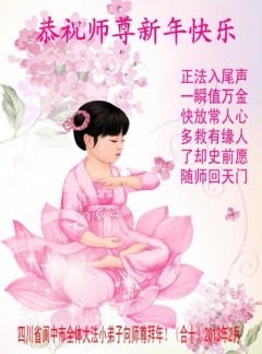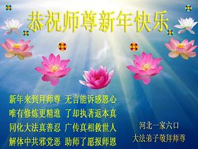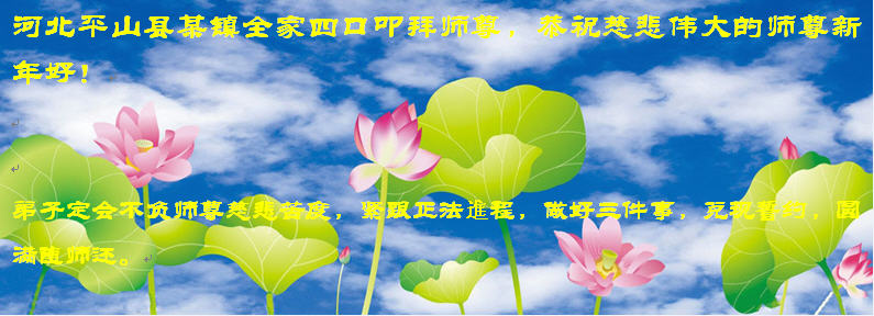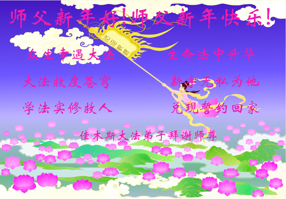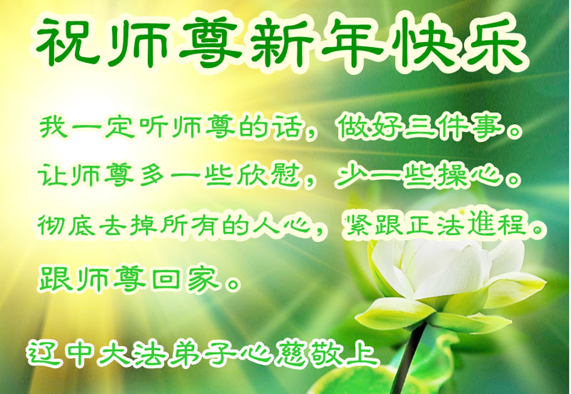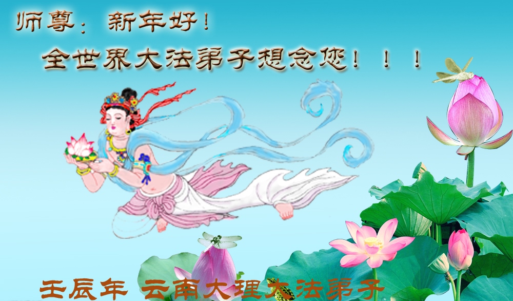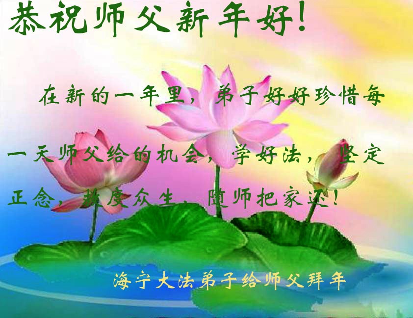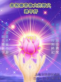 师尊您好!师尊辛苦了!新的一年又要到了,在此新年来临之际,弟子倍加思念师尊!一定谨记恩师教诲,多学法,去执著,在法中升华自己。努力做一个合格的大法弟子,新年更精進,跟上正法进程多救迷中众生,以对得起师尊为我们巨大的付出和慈悲苦度,兑现誓约圆满随师还!弟子叩拜师尊,合十!