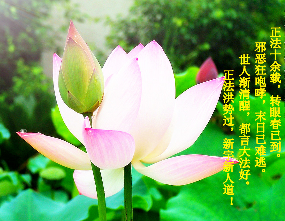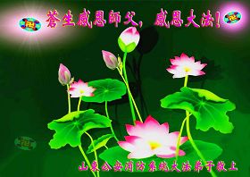 感谢师尊的慈悲苦度!此时无法用语言表达对师尊的感恩!弟子在艰难的困境中深受师尊的慈悲呵护走到了今天,也亲身体验了“正法时期的大法弟子”与师同在的法理。但是每次到“正法时期的大法弟子”时,都觉得很惭愧,因为弟子一直都是从法中获取,做的还很不够。新的一年又开始了,弟子一定努力精進,做好三件事,向内找修好自己多救人。在这正法最后的时刻,圆容师尊所要的,完成史前大愿。