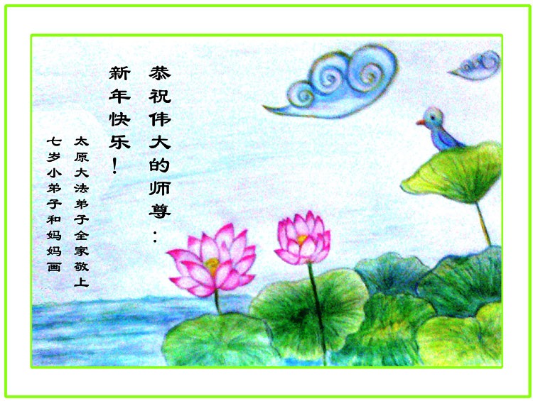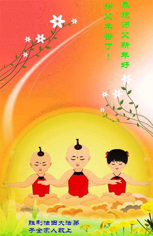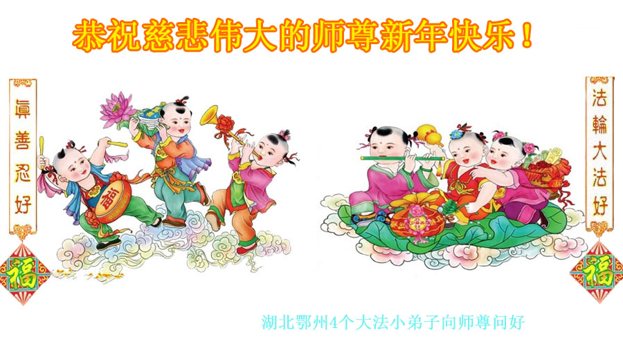 6岁半的小弟子: 师父咱们爱你!在新的一年里,我一定好好修炼,听师父的话,多学法,好好炼功,多去掉执著心,一定修炼圆满跟师父回家。谢谢师父!
