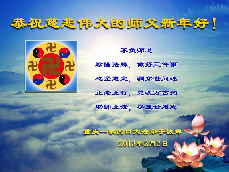 <英文版: http://en.minghui.org/html/articles/2013/2/11/137669.html>美国加州西雅图犹他夏威夷大法弟子向师尊拜年(8条)