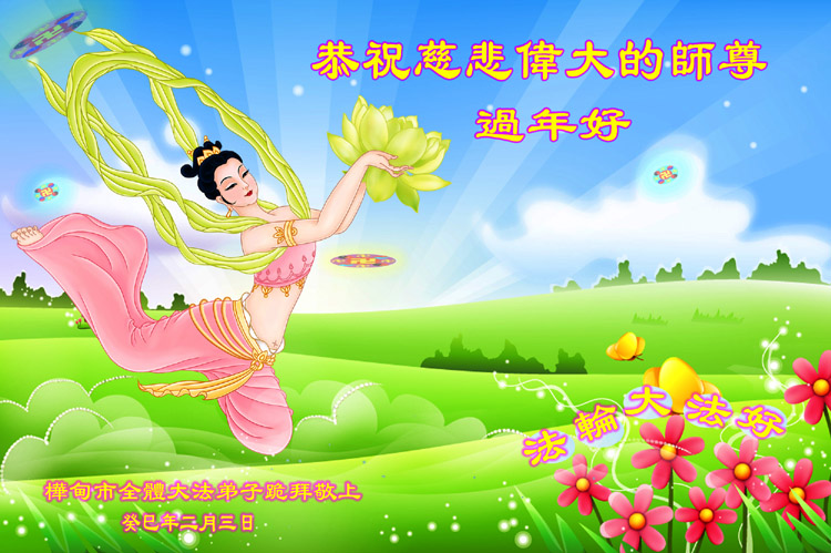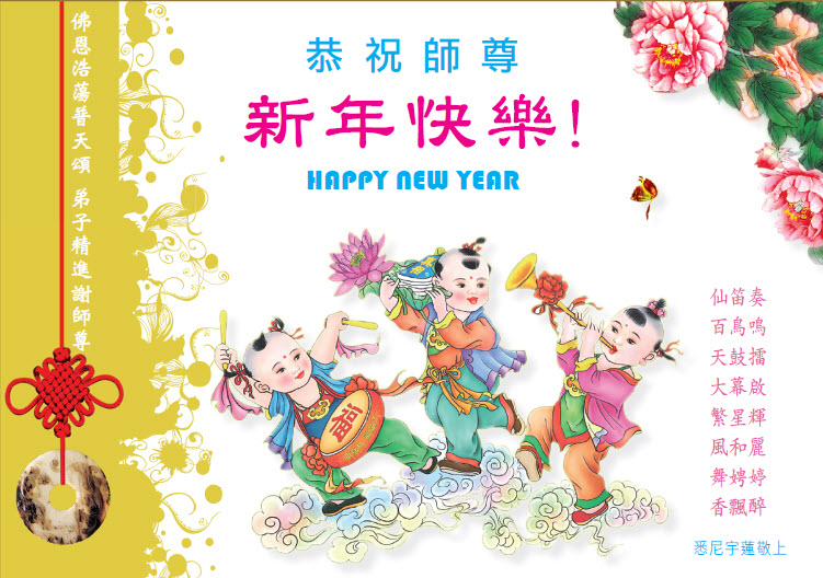 恭祝师尊新年快乐!我们将在新的一年里精進实修,不辜负师尊的期盼。