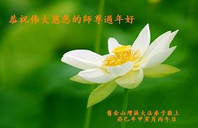 大陆被非法关押的全体大法弟子向慈悲伟大的师尊恭贺新年好!弟子虽然身陷邪恶的黑窝,却无时不在想念远隔重洋的恩师!请师父放心,弟子虽然深陷牢笼,在这里,弟子一定反思自己,找出漏洞,全力铲除一切迫害大法弟子的黑手烂鬼,更好的救度这里该救度的众生。