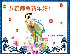 明真相的公安离退休干部恭祝李大师新年快乐!伟大慈悲的李大师过年好!法轮大法在中原大地洪传已有二十多年的历史了,有多少世人在法轮功修炼者的慈悲召唤下明白了中共邪党的骗人伎俩,与其划清了界限,为自己选择了美好的未来;有多少身患顽疾的不治之症在法轮功修炼者的慈悲劝说下,诚心敬念九字吉言:“法轮大法好,真善忍好”,疾病不翼而飞;有多少家庭由于修炼法轮大法而祥和;有多少世人佩带真相护身符躲过了天灾人祸,李大师慈悲于众生,法轮大法恩泽中原,华夏子民感谢李大师!盼望能够有机缘亲自拜谢李大师!再一次叩拜李大师!北戴河一民营企业总经理携全体员工恭祝李大师新年快乐!尊敬的李大师您好!在新年到来之际,我们携全体员工及所有的亲朋好友给伟大慈悲的李大师拜年!自从全体员工明白真相并牢记“法轮大法好,真善忍好”之后,工作中不争不抢,与人为善,都想按照真善忍的标准做一个好人,使企业的经济效益不断增长。
