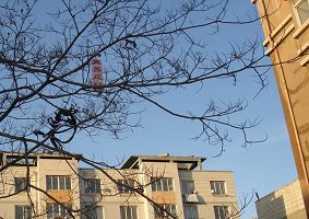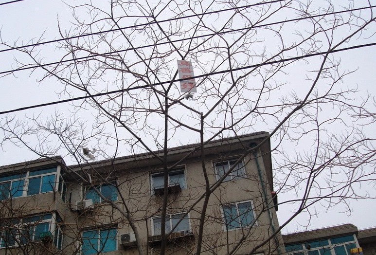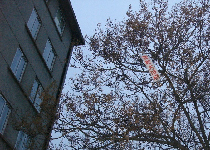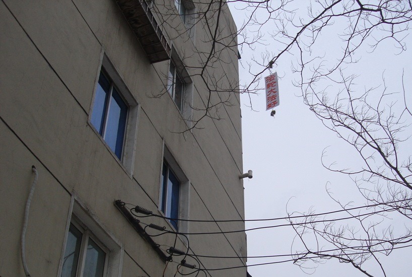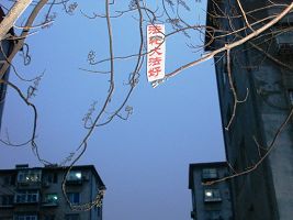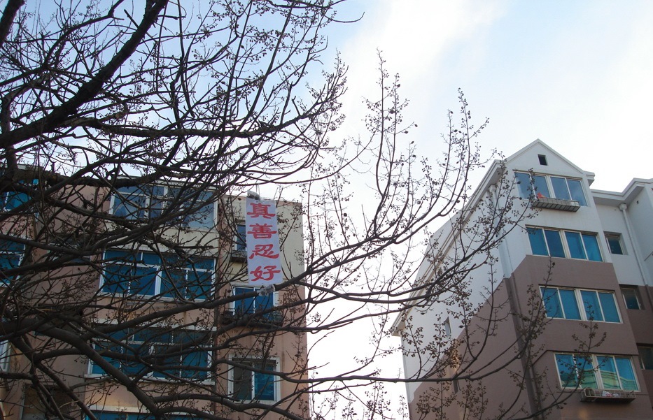 中国传统新年之际,大连大法弟子悬挂真相条幅