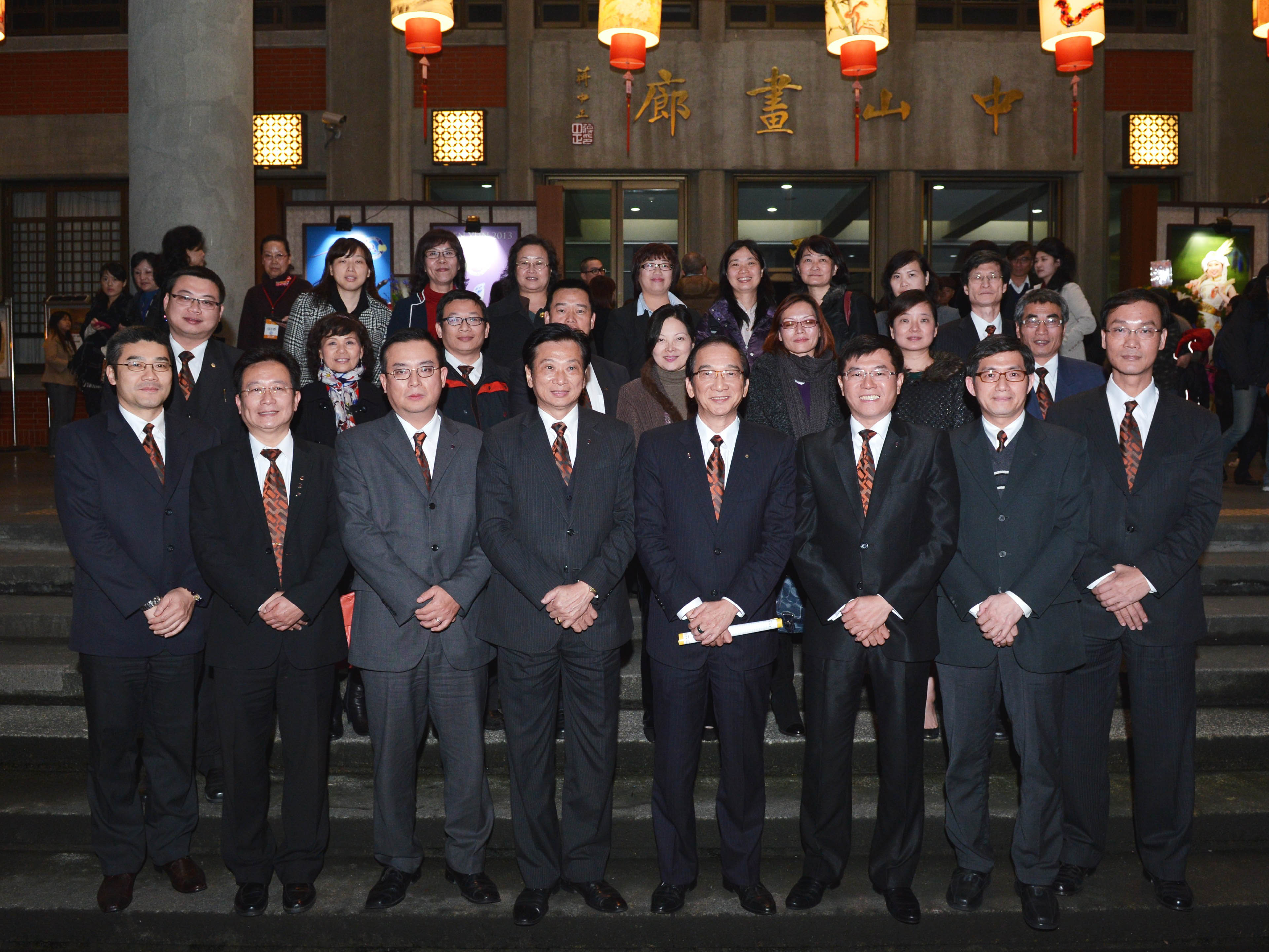 侨茂不动产董事长李育宽(前排右4)和分店长、经纪人、眷属们共同观赏二零一三年神韵晚会,散场后在国父纪念馆前合影留念。