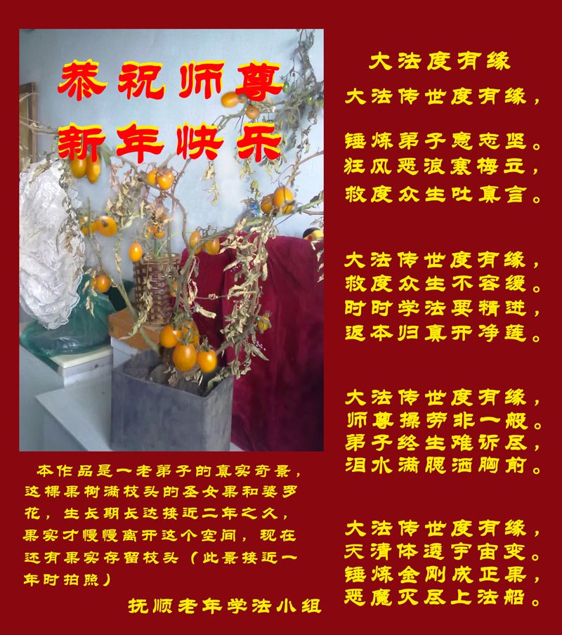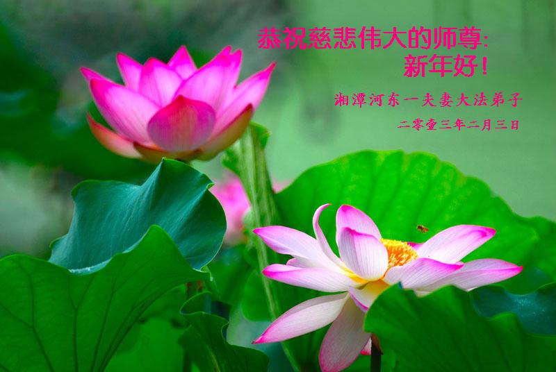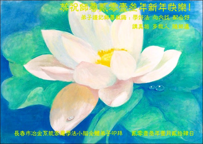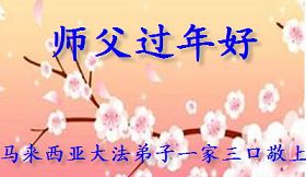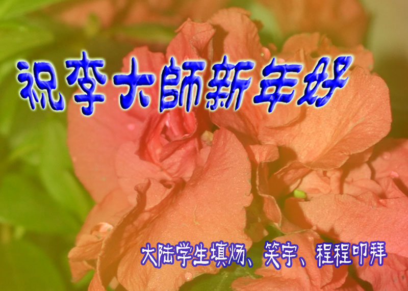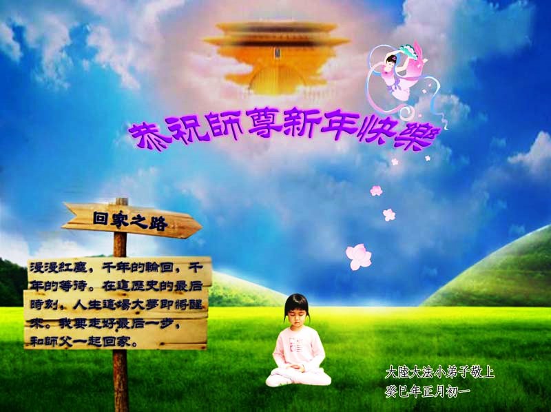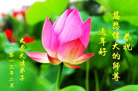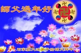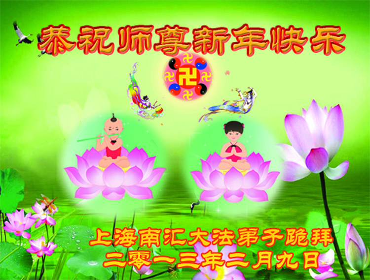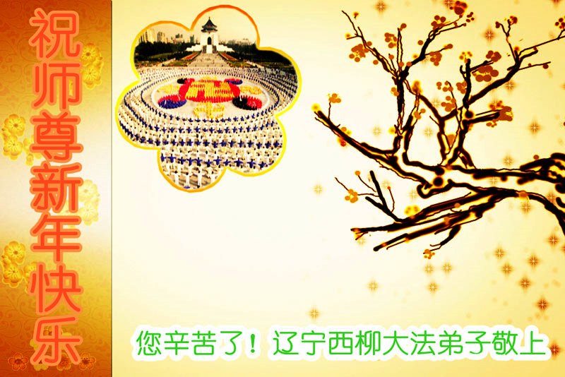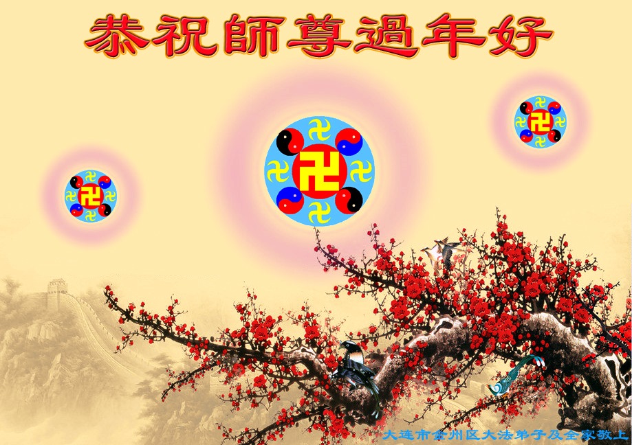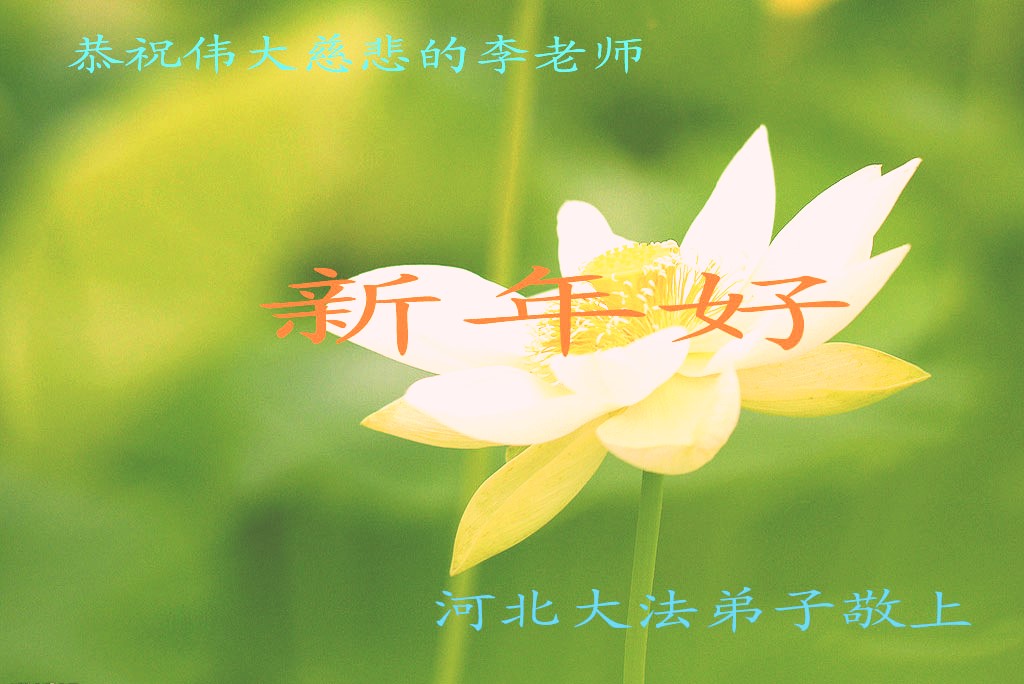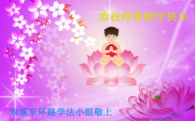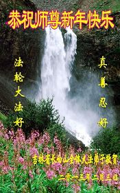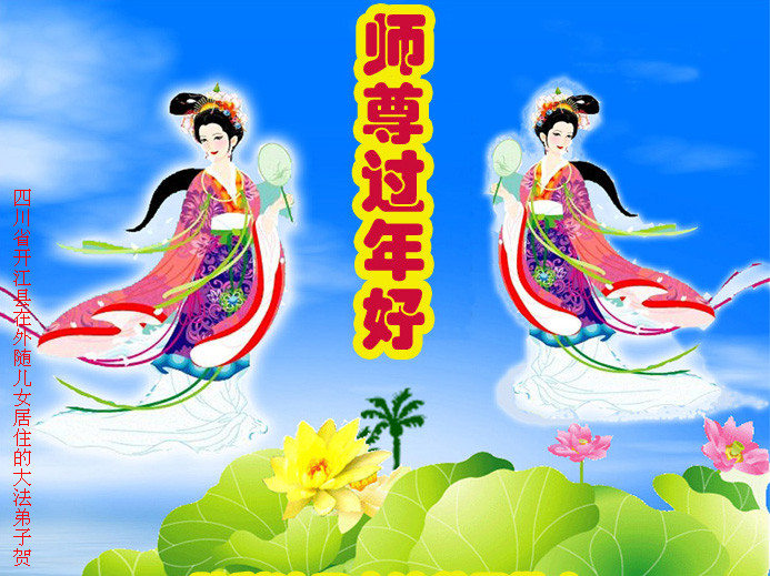 您为拯救众生、为您的弟子们修炼提高护航实在太辛苦了,您为人类带来了无限的光明和希望。看到您的弟子在中共高压迫害的14年里,他们一如既往,年复一年日复一日的做着讲清真相救人的大事,而且不求回报,无私付出,只有您这高德师父才会教出如此善良无私的徒弟。为表敬意,借新年佳节之际发个贺卡,祝您新年愉快,合家欢乐。