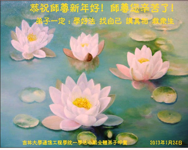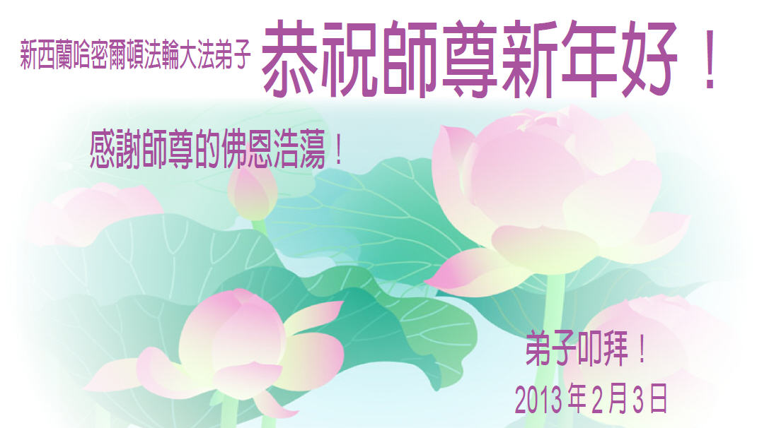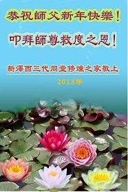 <英文版: http://en.minghui.org/html/articles/2013/2/10/137555.html>美国纽约华府费城等地大法弟子给师父拜年(12条)