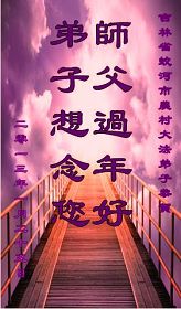 师父您辛苦了!我代表玉田农村大法弟子及家属和明白真相的世人给您拜年了!师父!过年好!谢谢您!
