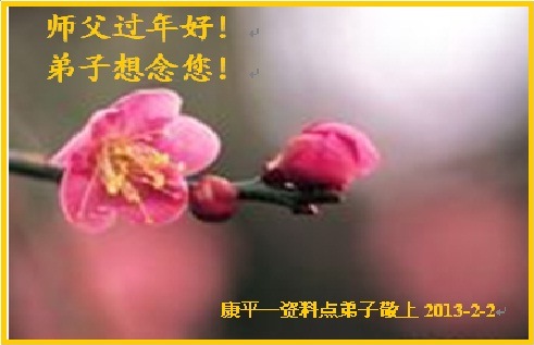 新春佳节,弟子想念师父,跪拜师父!我们知道师父的心愿是要把我们度成,要让更多的众生得救,师父的一切都是为了我们!为了众生!师父为我们弟子和众生承受的太多太多了。我们就只有修好自己,多救人,才能让师父高兴。新的春天开始了,我们一定要做好师父要我们做的一切,珍惜师父留给我们的每一天,整体配合好,让更多的人来看神韵,让更多的人明白真相得救!