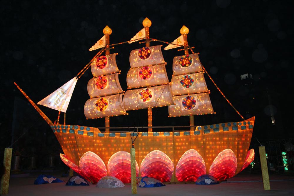 ![]() 法轮功学员亲手制作的“法船”巨型花灯,殊胜美好 |