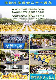 ![]() 二零一二年十一月十七日,五千名台湾法轮功学员在总统府前的广场上,排出“法正天地”及法轮功的标志法轮图形,场面宏伟壮观 |
