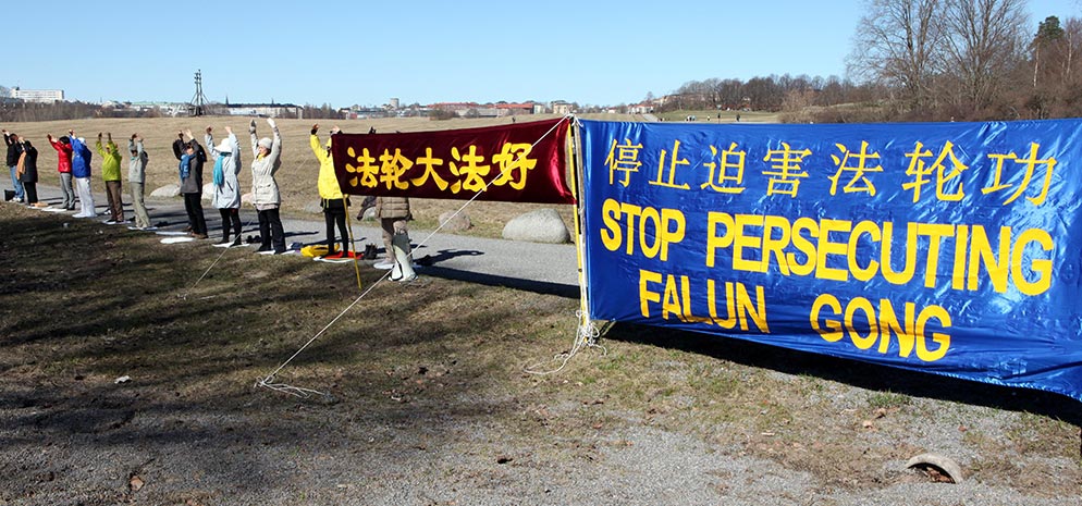 ![]() 纪念“四·二五”,瑞典法轮功学员中使馆前炼功讲真相 |