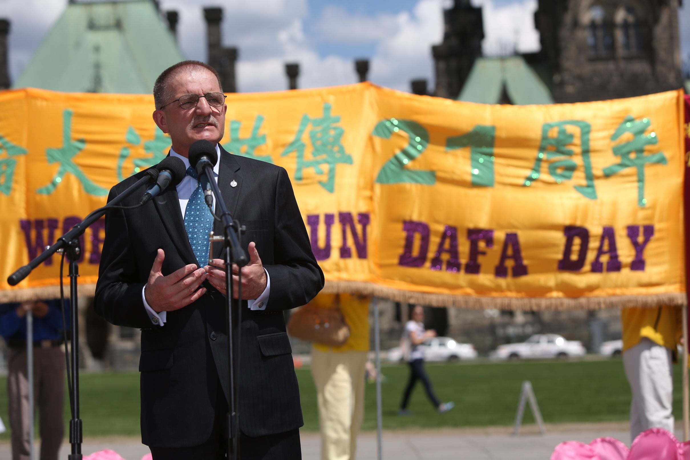林富贵议员认为:“台湾法轮功学员没有搞政治,法轮功除了游行活动,也用其他艺文多元化方式来推广‘真、善、忍’,这非常好,法轮功是非常好的信仰,和政治完全没关系的。”