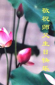 辽宁省朝阳市凌源市大法弟子恭祝慈悲伟大的师尊生日快乐!辽宁省朝阳市凌源市大法弟子恭祝慈悲伟大的师尊生日快乐!辽宁省朝阳市凌源市全体弟子跪谢师尊的慈悲救度!时光飞逝,弟子知道有太多的遗憾已无法弥补,唯有在最后的这段修炼路上,不辜负师尊的厚望,以法为师,始终如一的做好三件事,放下自我,遇事向内找、向内修,归正一思一念,形成圆容不破的整体,不辜负师尊的厚望,迎接法正人间普天同庆的到来,弟子再次叩谢师恩!辽宁朝阳全体大法弟子恭祝师尊生日快乐!辽宁朝阳大法弟子恭祝师尊生日快乐!辽宁省朝阳市凌源市大法弟子恭祝慈悲伟大的师尊华诞快乐!与全世界大法弟子共同庆祝五一三世界法轮大法日,庆祝法轮大法洪传世界二十一周年!庆祝无量众生得到师尊的慈悲救度!感谢师尊的慈悲苦度!愿亿万净莲溶于法光,跟师尊回家!辽宁省朝阳市凌源市大法弟子向师尊问好!恭贺师尊华诞!恭贺世界法轮大法日!惭愧自己不争气,做错了很多很多事情,让师尊操心了!让师尊承受太多太多了!我明白,如果师尊不要我了,我不会仍然留在大法弟子中间,我不会有机会给师尊发贺卡。