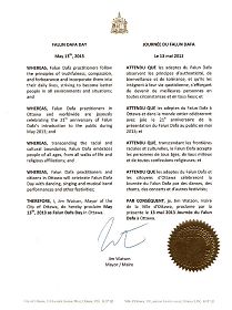 五月十三日是世界法轮大法日。自二零零一年以来,加拿大首都渥太华历任市长都宣布过“渥太华法轮大法日”。渥太华市长吉姆•