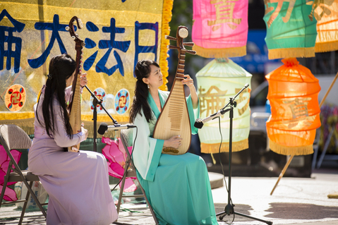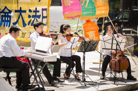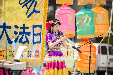 中午天国乐团一首“法轮大法好”迎来了欢快热闹的庆祝活动。优雅温婉的女司仪,大气儒雅的男主持,向各位来宾介绍着法轮功和法轮大法日的由来。弟子们多才多艺的表演表达着得度的感恩,救人的心切,庆祝的喜悦。