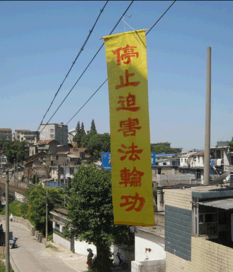 近段时间某市的各县以及各乡镇、村级等地区在四•二五和五•一三这段时间内,上千条条幅悬挂在各大街小巷的树上,电线上和山上,成为一道最亮丽的风景。