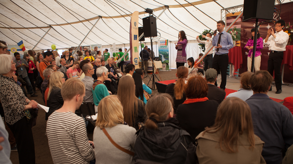 (全场起立热烈鼓掌)大家好!(众弟子:师父好!继续鼓掌)哇,这是我们这几年开的最大一次法会了吧。(鼓掌)来的人比较多,我听说大陆也来了一些人。大法弟子的法会嘛,是大法弟子修炼中互相促進的一个最好的环境。通过法会的交流,大家能找出不足,也能够看到别人的长处、使它发扬光大。