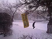2013年1月1日清晨,出现在黑龙江省某市路边的“法轮大法好”条幅。