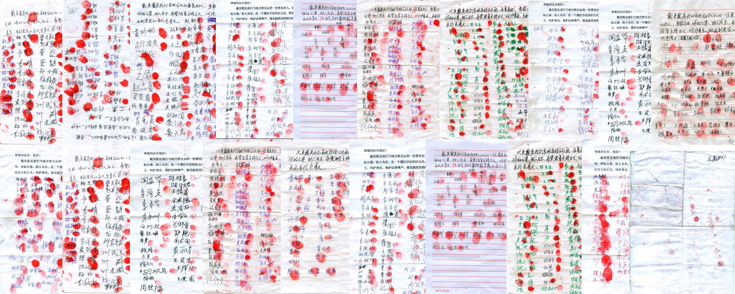 ![]() 一千八百六十一名民众签名按手印声援营救戴美霞 |