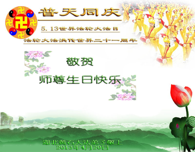 松原市全体大法弟子庆祝法轮大法洪传二十一周年!恭祝慈悲伟大的师尊生日快乐!