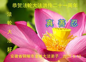 我很高兴的向所有庆祝法轮大法传世二十一周年的人们致以最热烈的问候。