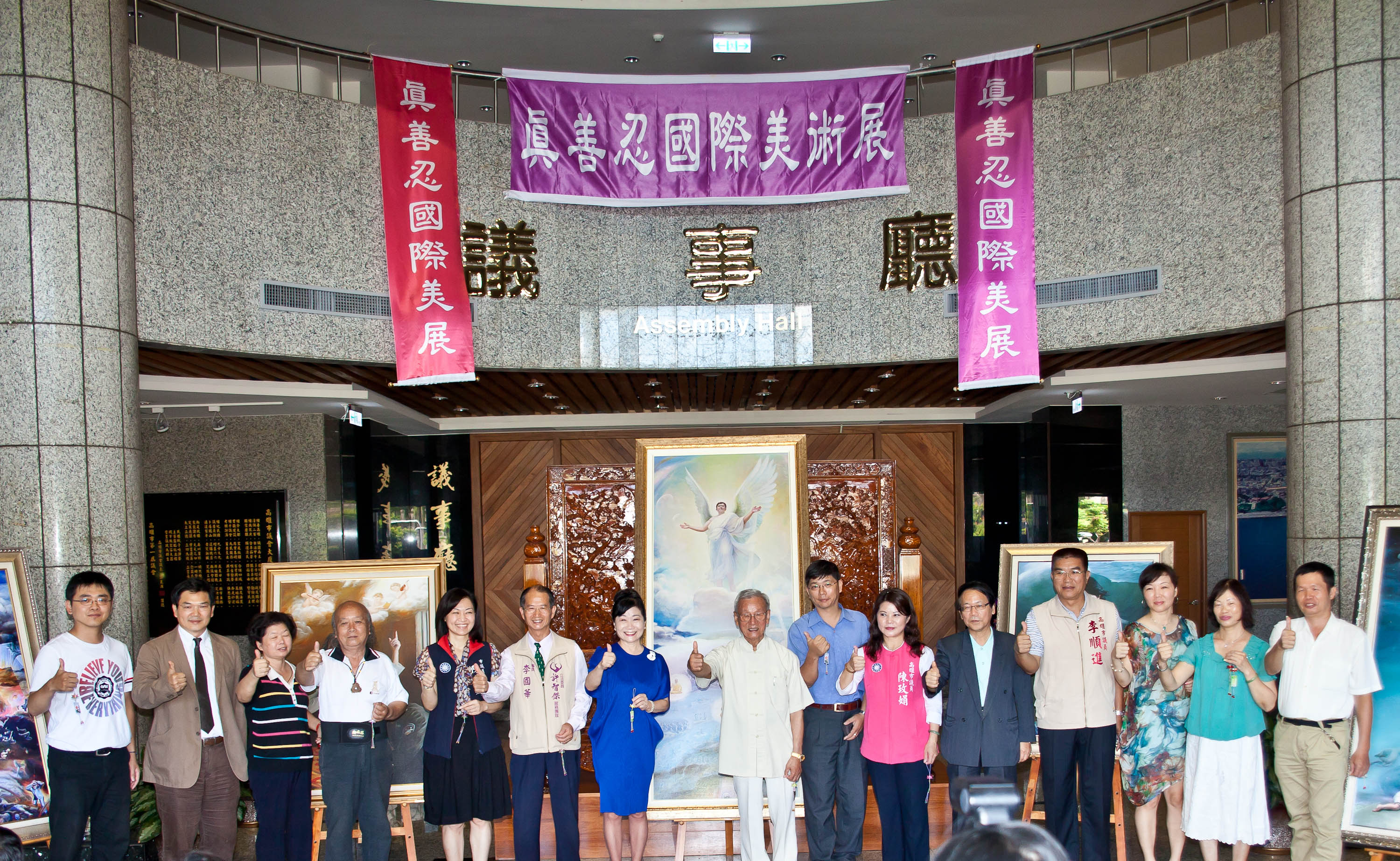 图 1:“真善忍国际美展”于二零一三年六月二日在高雄市议会举办揭画茶会。
