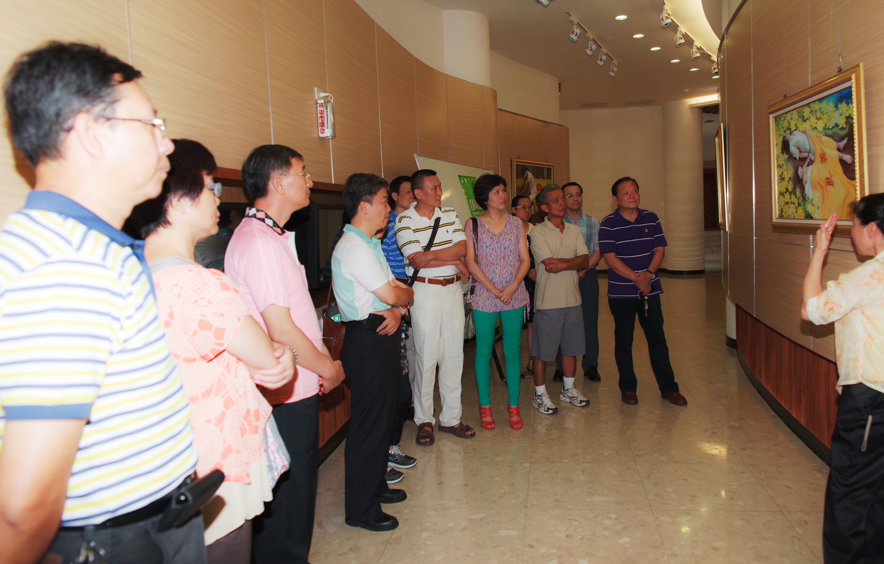 【明慧网二零一三年七月一日】(明慧记者孙柏、苏容台湾高雄报道)二零一三年六月一日至六月三十日,“真善忍国际美术巡回展”在台湾高雄市议会展出一个月,回响热烈。六月二日,在市议会中央大厅举办揭画茶会,数位议员、立法委员及多名艺术界画会理事长等与会,盛赞真善忍美展的画作是艺术文化的精品,深具修炼意境与坚忍不屈的精神内涵。展出期间刚好是高雄市政总质询,很多市府一级主管到议会接受质询时,刚好有机会欣赏美展画作,一位市府局长对美展的艺术水平和画作呈现的不畏强权精神竖起大拇指说:“法轮大法好,法轮功了不起。”