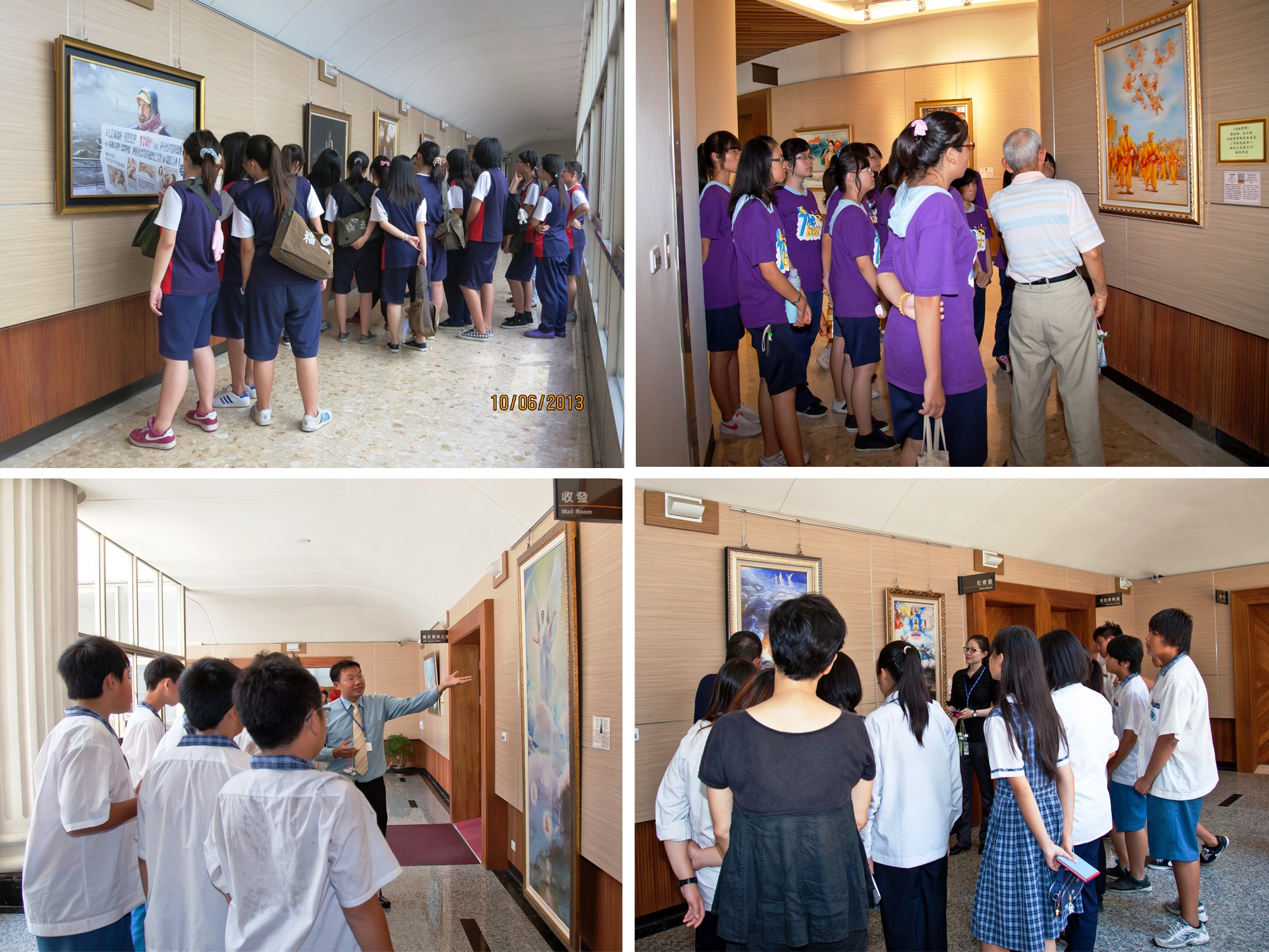 画展在一个月中吸引不少市民观赏,有邻近机关、社团相约来看展,为画作中修炼人的美好传神感动、为被迫害的写实故事震惊;也有学校老师带领全班学生前来上了一堂对孩子们身心灵特别有助益的美术课程,有的学生在留言簿上写下:“真善忍,我为你而来”,一位美术老师说:“孩子们了解善恶有报的道理,品德会提升。”