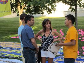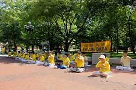 二零一三年七月二十日,部分密西根州的法轮功学员们聚集在密西根大学安娜堡校园中心的广场上,宁静安详地炼习五套功法,同时,学员们向过往的师生,行人们讲述什么是法轮功,为什么正在遭受无端的迫害,特别是目前正在发生的活摘器官的罪恶,明白真相的人们不无停下来,签名支持反迫害。