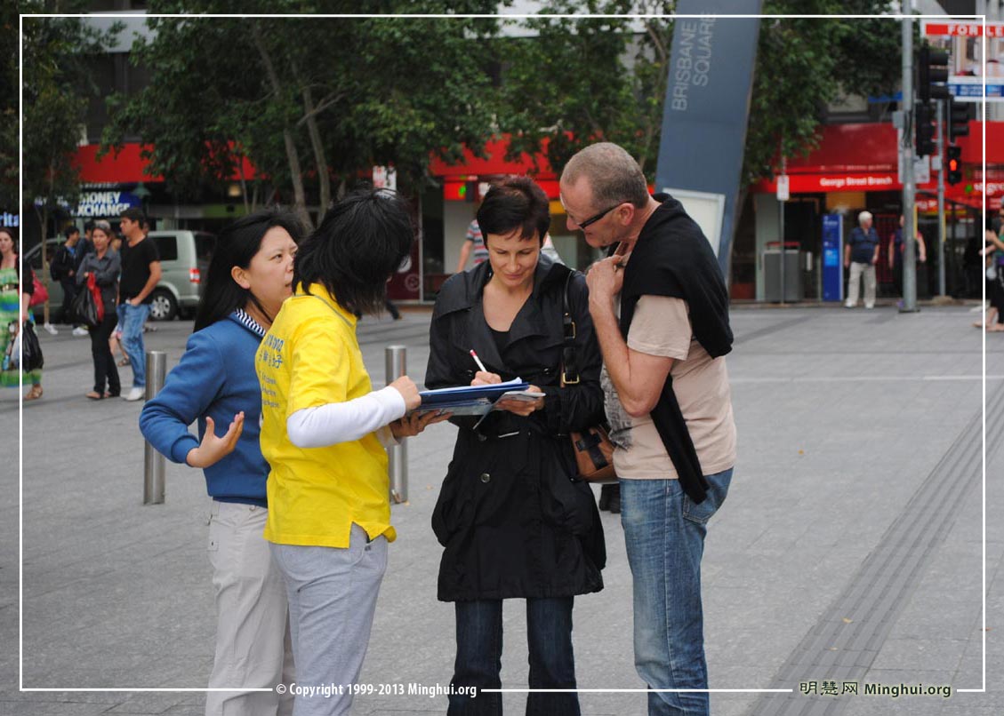 <英文版: http://en.minghui.org/html/articles/2013/7/24/141193.html>反迫害十四周年 布里斯本民众谴责中共(图)