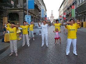 二零一三年七月二十日,意大利法轮功学员在米兰市中心举行活动,向当地民众和来自世界各地的游客讲真相,揭露中共对法轮功长达十四年的残酷迫害。